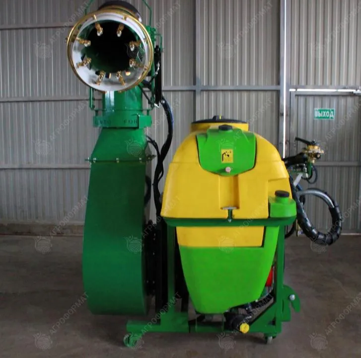 Гидродинамическая система смешивания жидкостей в баке объёмом 600 л. Автоматическая установка направления распыления состава при круговом вращении распыляющей турбины (расход – 115-145 л в минуту). Автоподача воды через фильтрационный шланг длиной 6 м. В комплекте: 8 двухпозиционных форсунок из латуни, карданный вал, насос APS-145 с четырьмя диафрагмами. Общий вес устройства – 345 кг, размеры – 155/142/170 см.